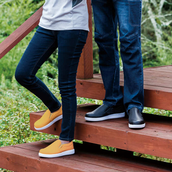 数々のメディアで紹介され、 SNSでも話題のファイングリップシューズ。厨房シューズを元に作られた靴のため、油や水回りといった滑りやすい場所で威力を発揮します。スリッポンタイプなので、脱ぎ履きがしやすいです。滑りたくないシーンはもちろん、おしゃれなデザインなので普段使いにもぴったりです。