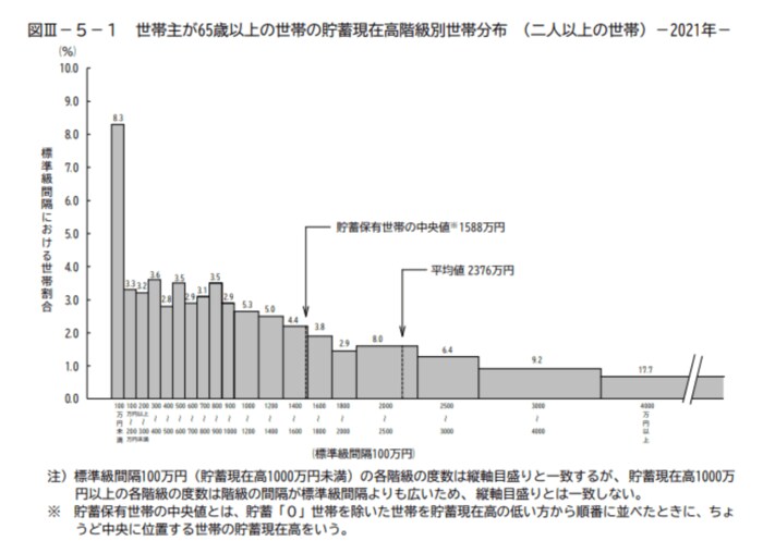 65歳以上で無職の世帯、貯蓄はいくらもっているのか