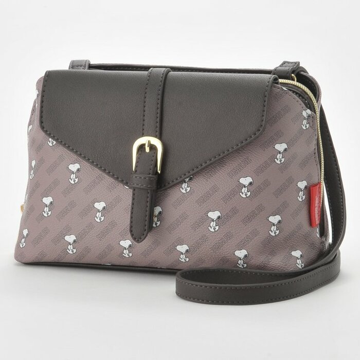 スヌーピーがモノグラムで描かれた2WAYタイプのショルダーバッグです。モノグラムと無地の素材のミックスがおしゃれな印象を与えます。