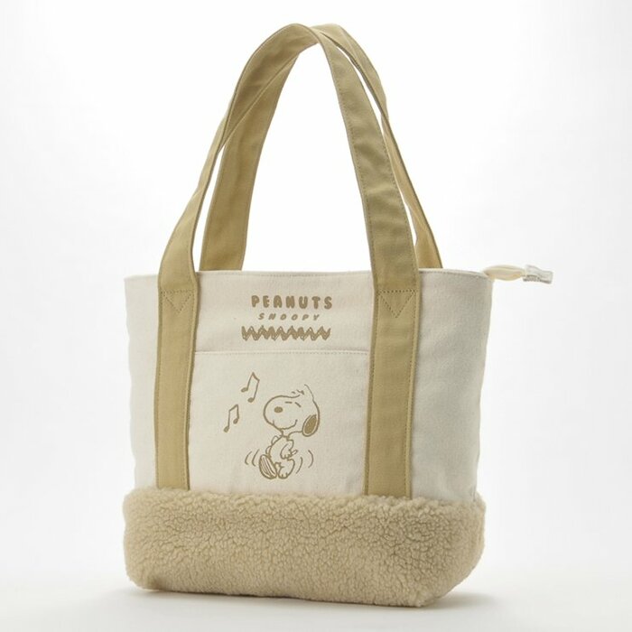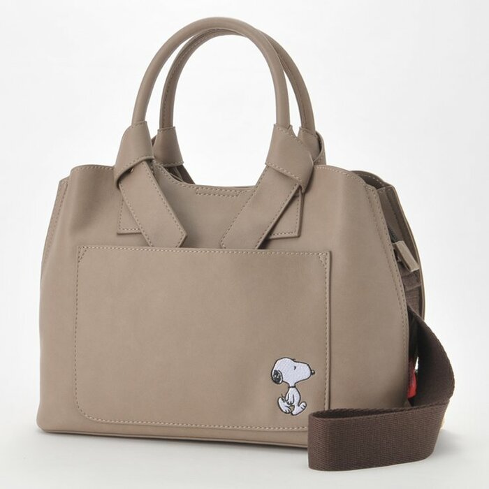 大人気スヌーピーのスクエアトートバッグです。柔らかな合成皮革を使用しているので、きっちりしすぎない印象を与えてくれます。