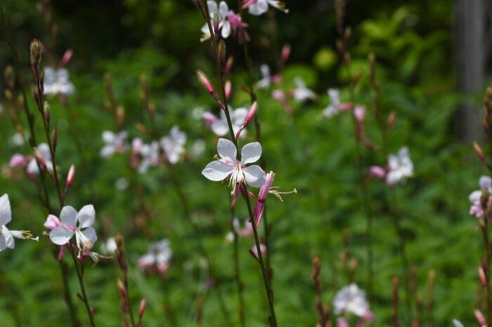 細い茎にチョウのようなカワイイ花が咲くガウラ。風にユラユラ揺れる姿が優雅です。背丈が高くなるので花壇の後方に。こぼれ種からも株を増やすほど強健な性質です。※参考価格:300~500円前後(3号ポット苗)