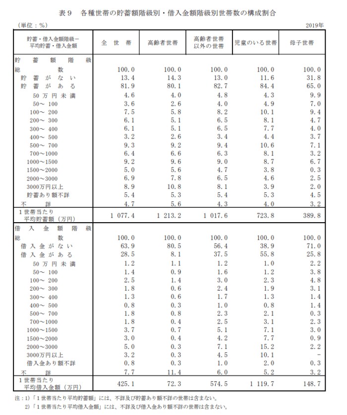 【一覧表】子育て世帯の貯蓄はいくらか