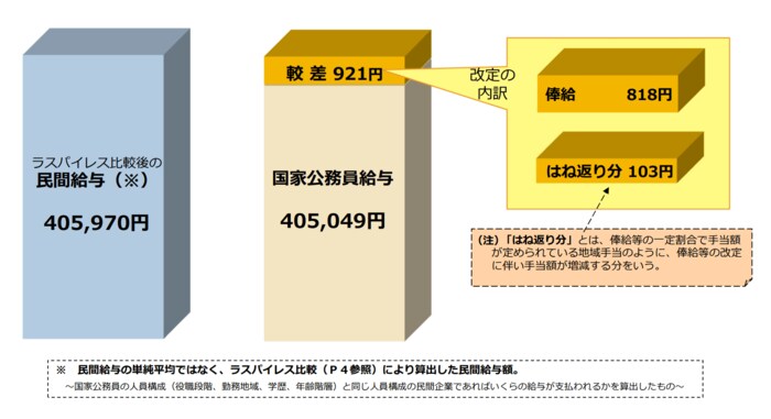 今年の民間給与との差である921円(0.23%)を解消するため、改定が行われる見通しとなりました。