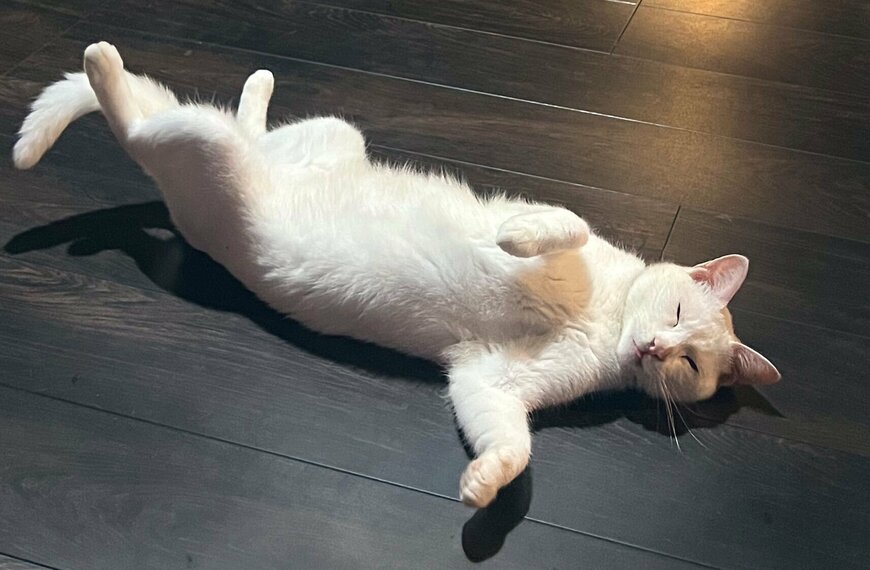 大胆にお腹を出して手足を広げる姿は、安心感に包まれ爆睡しているようにも見えます。