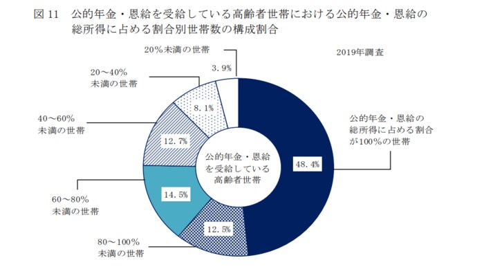 2019年調査では、年金だけで生活する世帯は約半数でした。