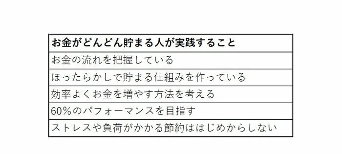 お金がどんどん貯まる人が実践するポイントは5つあります。