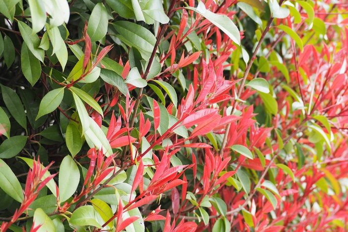 真っ赤な新芽と緑の葉、2色のコントラストが美しいレッドロビン。カナメモチとオオカナメモチを掛け合わせてつくられた常緑高木樹です。