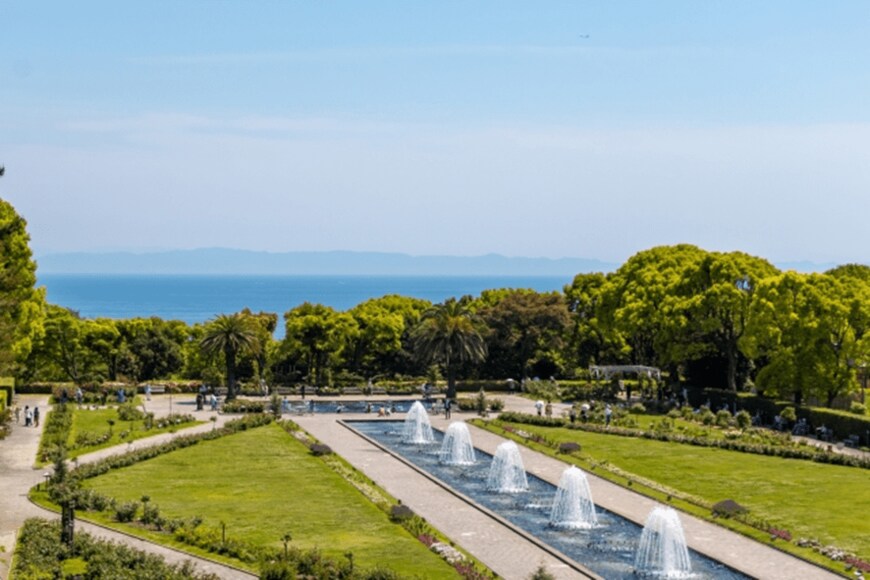 神戸市にある須磨離宮公園もおすすめです。噴水広場や芝生広場が広がり、花の庭園や鑑賞温室ではさまざまな花や植物が楽しめます。