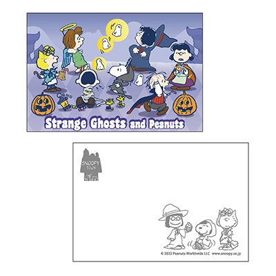 スヌーピータウンショップ オリジナルのアートカードです。今年もハロウィンの季節がやってきました。今年のテーマは「Strange Ghosts and Peanuts」。不思議なお化けとPEANUTSの仲間たちのハロウィンが始まります。