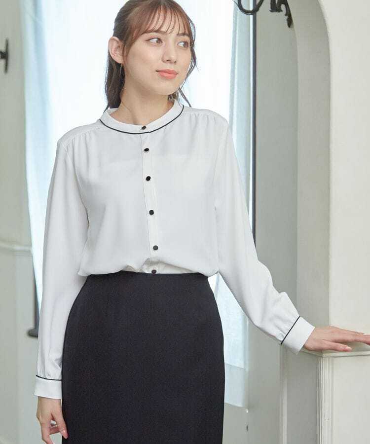 【ハニーズ】ジャケットとの相性も抜群! パイピング使いブラウス