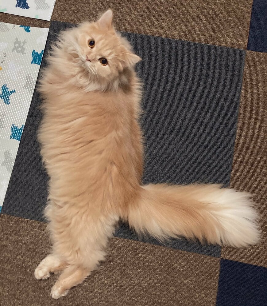 ツイートのとおり、ボリューミーな尻尾を直角に曲げているかのようです。