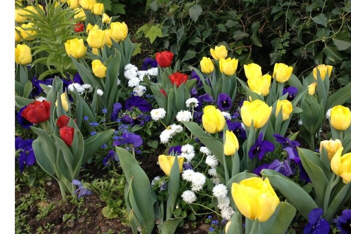 花期が長い一年草は次から次へと花を咲かせ、一緒に植えておくことで球根植物の草姿が乱れても目立たなくしてくれます。