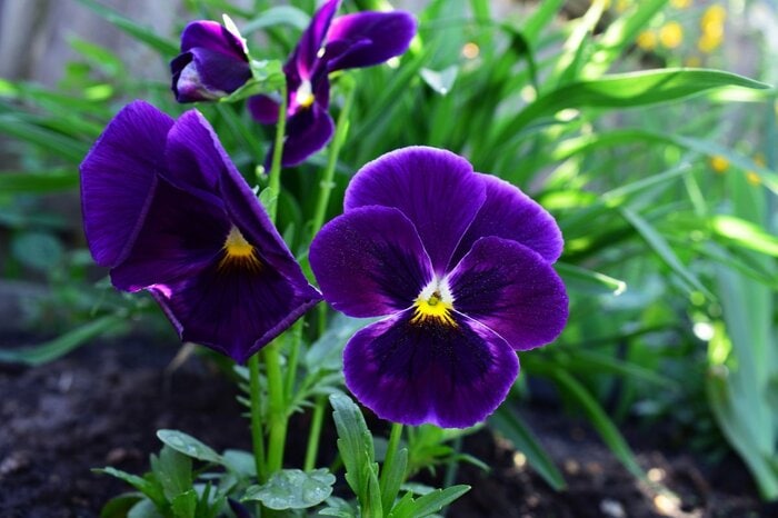 ビオラはパンジーよりやや小さめの花でナチュラルな雰囲気。春のガーデニングの定番花で、丈夫で育てやすく初心者にもオススメです。※参考価格:100~300円前後(3号ポット苗)
