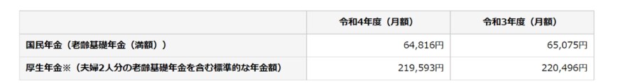 日本年金機構の「令和4年4月分からの年金額等について」によると、2022年度の厚生年金の月額(夫婦2人分の老齢基礎年金(国民年金)を含む)は「月額21万9593円」です。