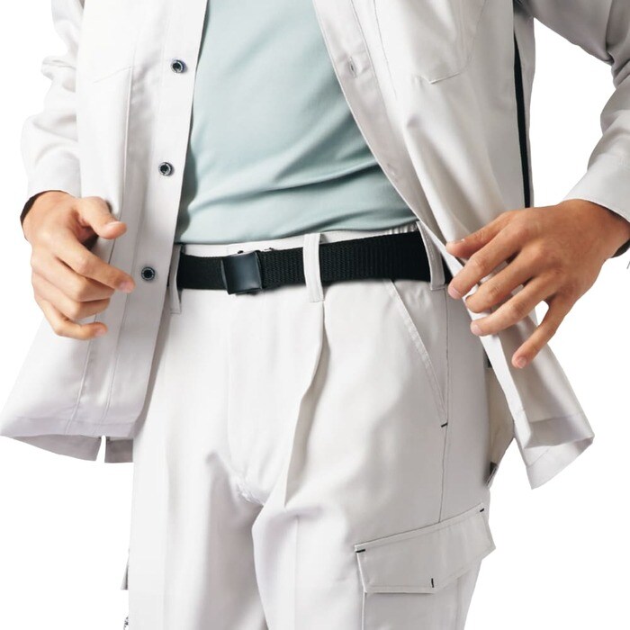 「GI バックルベルト」は穴のない自由にサイズを調整できるベルトです。といっても使い方は難しくなく、ベルトをバックルに滑り込ませてロックするだけ。素材がポリエステルのため、軽く身体になじみやすいです。