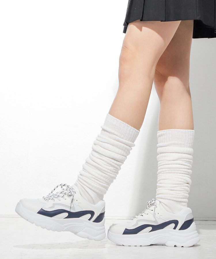 たとえば、こちらのダッドスニーカー(税込2980円)は、ルーズソックスを使った私服コーデとの相性が良いでしょう。