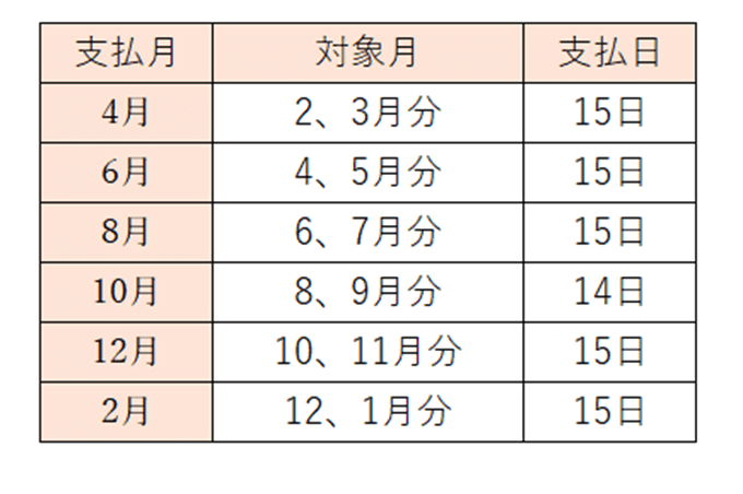 年金は毎月振り込まれるわけではありません。偶数月の15日に、前月までの2ヵ月分がまとめて支払われます。