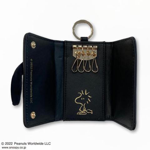 スヌーピーのアップリケが付いた可愛いキーケースです。リングとキーフック付で機能性が良く、普段使いにピッタリのアイテムです。