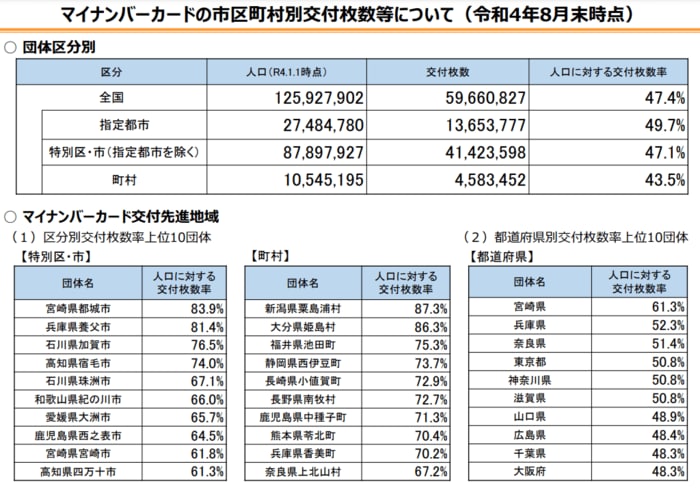- 総務省「マイナンバーカードの市区町村別交付枚数等について」(2022年8月末時点)