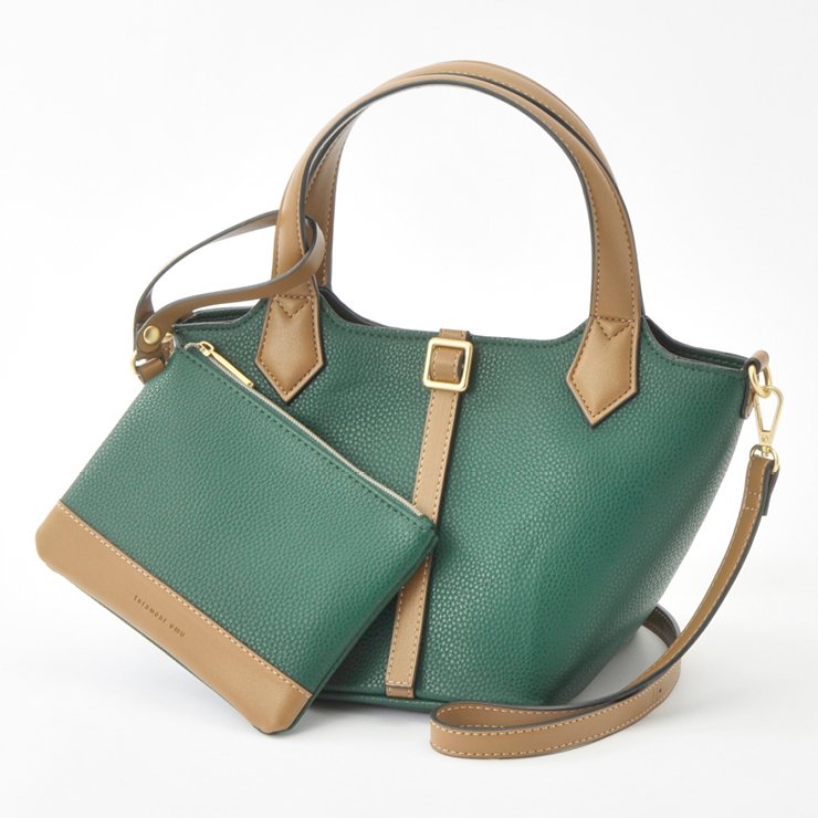 こちらがしまむらで予約販売中の「ポーチ付きベルトモチーフ2WAYバッグ」です。バッグと同じカラーのポーチがついてくる魅力的なアイテムです。