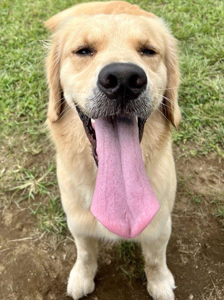 写っているのは、満面の笑顔がかわいらしい、ゴールデンレトリバーのぷぅちゃんです。