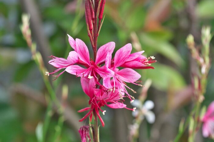ピンクや白の可憐な花を咲かせるガウラ。草丈が高く、庭の主役にもなる多年草です。野趣あふれる雰囲気で庭を美しく演出してくれるでしょう。