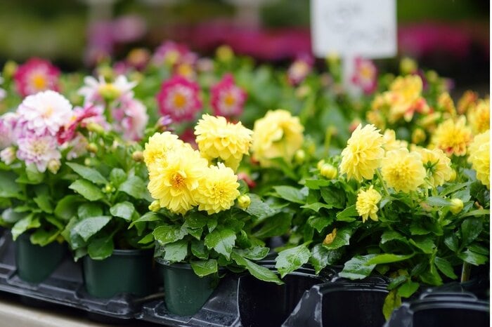 草花は黒や白色のポットのほかに、プラ鉢に植えられて販売されていることもあります。