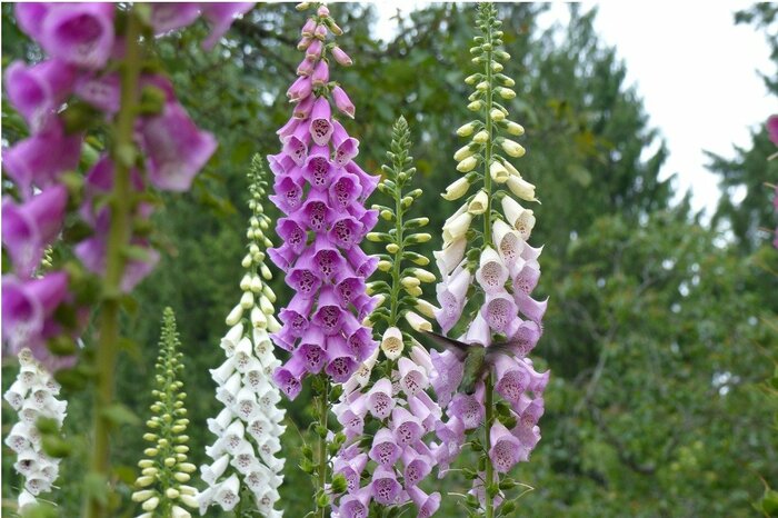 スッと長く伸ばした茎に筒状の花を連ねて咲かせるジギタリス。見映えする花姿で庭がスタイリッシュな印象に。大きく育った株は2~3株に株分けします。