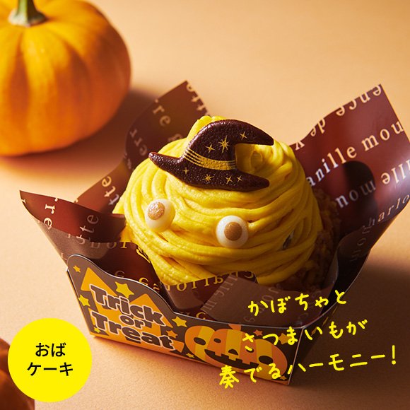 カスタード入りシルクスイートクリームとパンプキンクリームで、かぼちゃのおばけをイメージした、ハロウィン向けスイーツです。しっとりとしたスポンジに、なめらかな口溶けでほんのりとした甘みのパンプキンクリーム、カスタード入りシルクスイートクリームを組み合わせています。