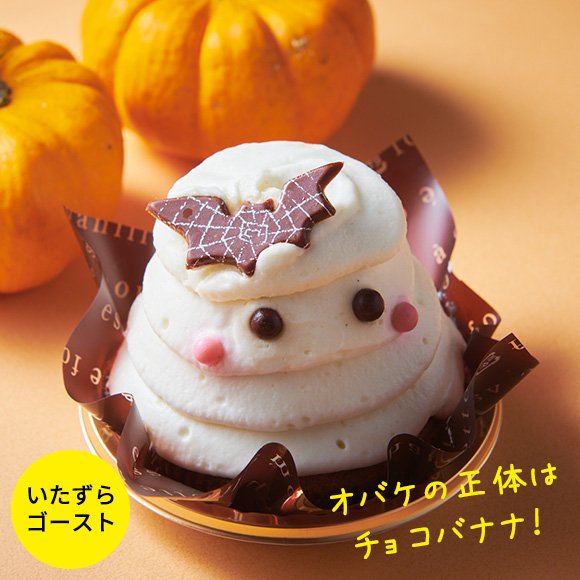 チョコレートシロップをしみ込ませたダコワーズ生地に、風味豊かなチョコチップ入りバナナクリームと、チョコレートガナッシュとホイップクリームを組み合わせています。子供たちが楽しく味わえるケーキです。子供に好まれるチョコとバナナのフレーバーを組み合わせた、パーティにいたずらしに行くおばけをイメージしています。