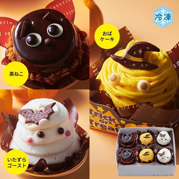 【【通販限定】ハロウィンケーキ詰合せ(黒ねこ、おばケーキ、いたずらゴースト)】2268円(税込)