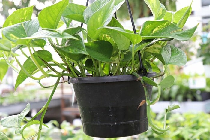 園芸店での取り扱いも多く、小さな鉢植えやハンギングバスケット入りの吊り下げて飾るタイプ、ヘゴ支柱に絡ませタワー状に仕立ててあるものなど、さまざまな樹形のポトスが販売されています。