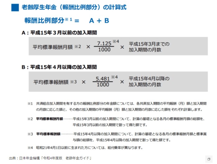 (2)平成15年4月以後=平均標準報酬額×5.481/1000×平成15年4月以後の月数