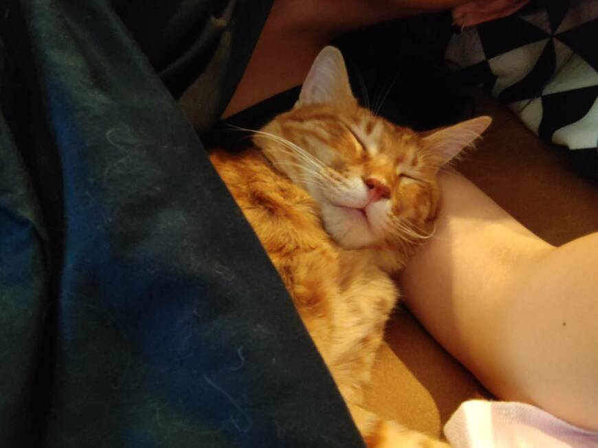 猫ちゃんにとって、飼い主さんの腕枕で眠る時間は至福のひとときだったのでしょうね。