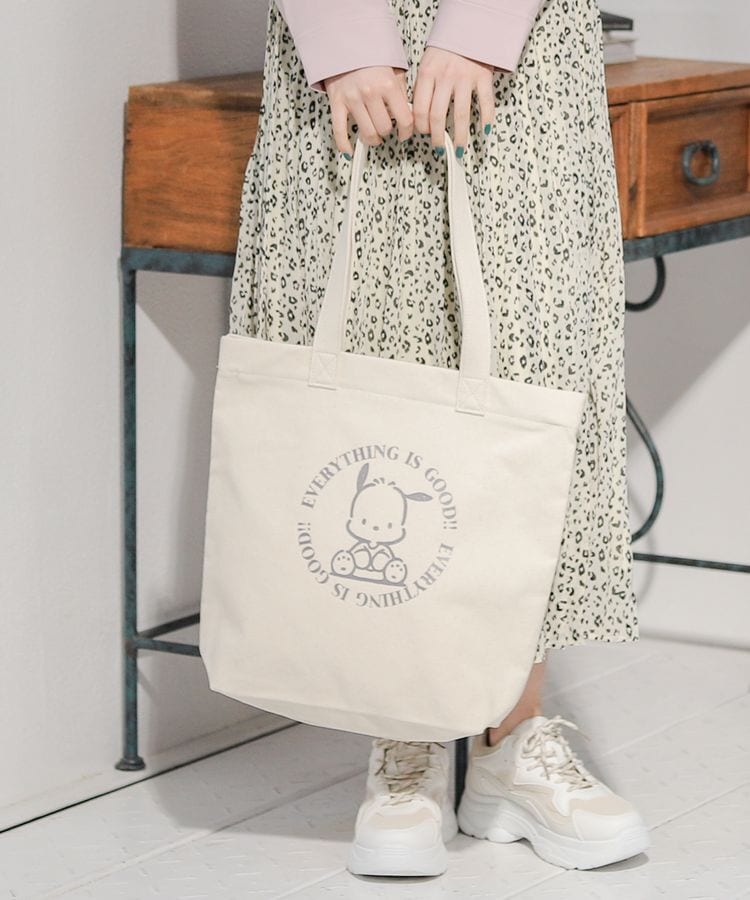 写真がハニーズで販売中の「サンリオキャラトートBag」です。中央にサンリオキャラが大きくプリントされているかわいいアイテムとなっています。