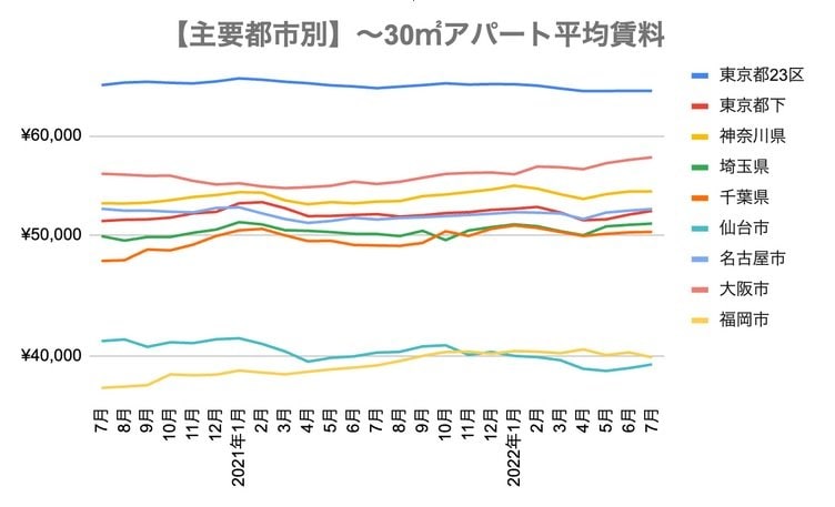 30㎡以下の単身用マンションの賃料平均は、東京都23区内で3%ほど下落。