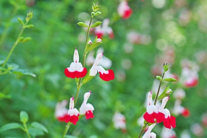 生育が旺盛で地植えにすると、すぐに大きく生長します。低木状に育つチェリーセージは茎がやや固めで、葉が小さい品種。切り花にもしやすいでしょう。