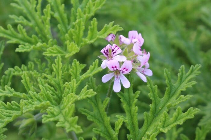 種類が大変豊富なゼラニウムのなかでも、特に葉に芳香がある品種をセンテッドゼラニウムと呼んでいます。最近は切り花として、花屋でも見かけるようになりました。