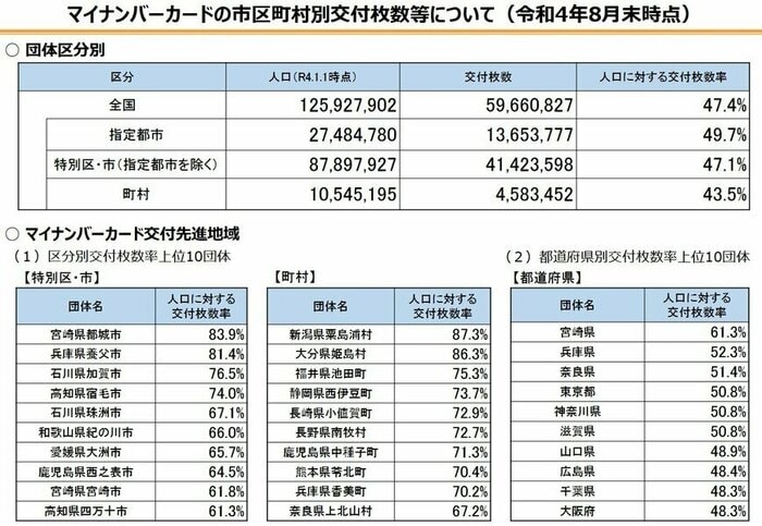 総務省によると、マイナンバーカードの普及率は47.4%(2022年8月末時点)となっています。