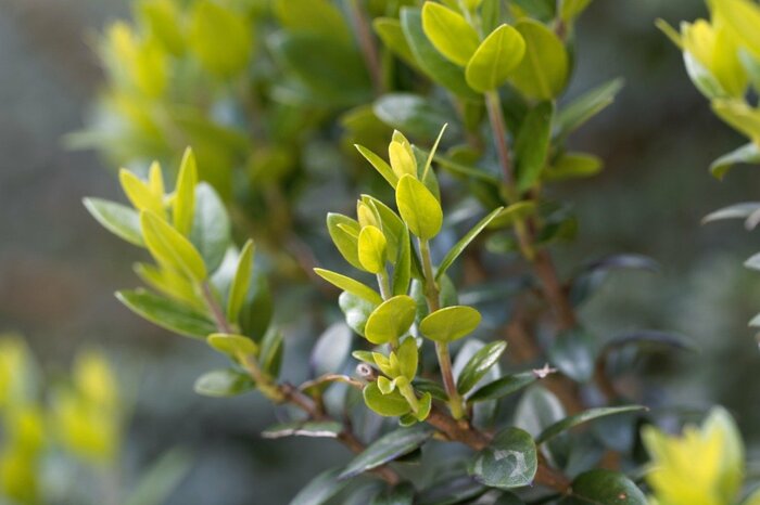 丈夫な性質で強剪定にも耐えるため、コンパクトに仕立てることも可能。斑入りの品種「バリエガタ」は生け垣にも用いられ、庭をオシャレに演出します。