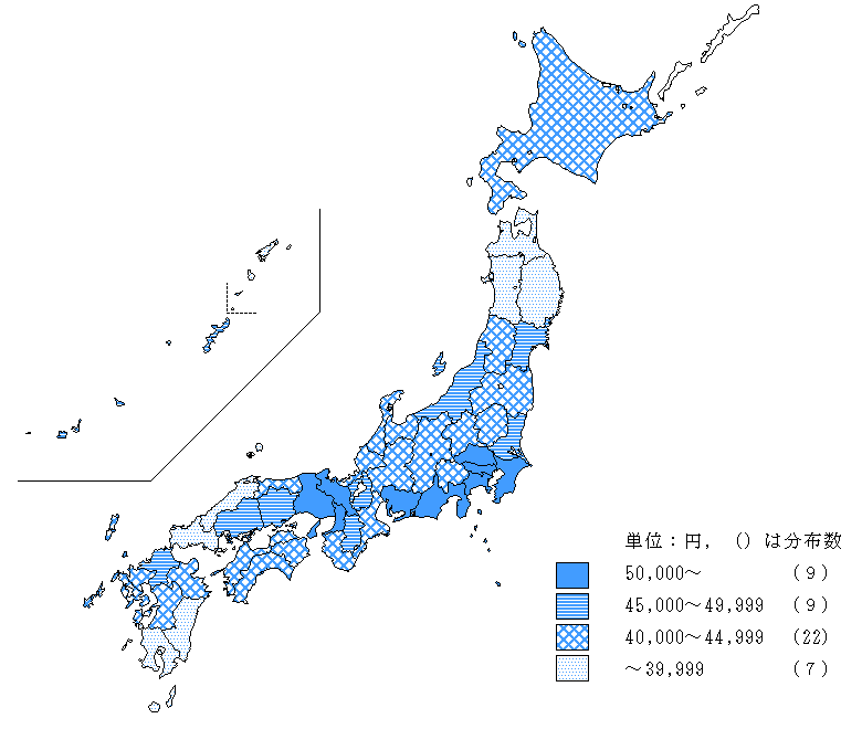 最も安い鹿児島は3万7863円と2倍以上の差があります。