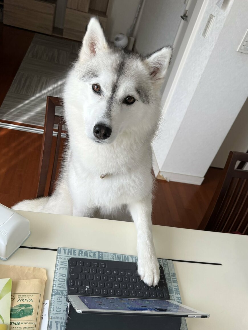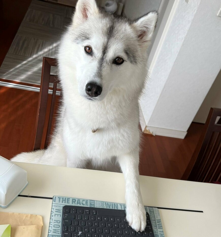 Twitterで話題の「キーボードに手を添えるハスキー犬」