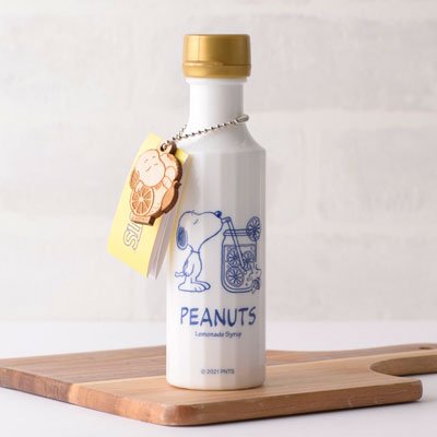 キャラクター入りの食品の瓶は使用後も使いたくなるものですよね。使用後に洗っても剥がれることのない、シルク印刷されたキャラクターと木製チャーム付きのスヌーピーのシロップを2つご紹介します。