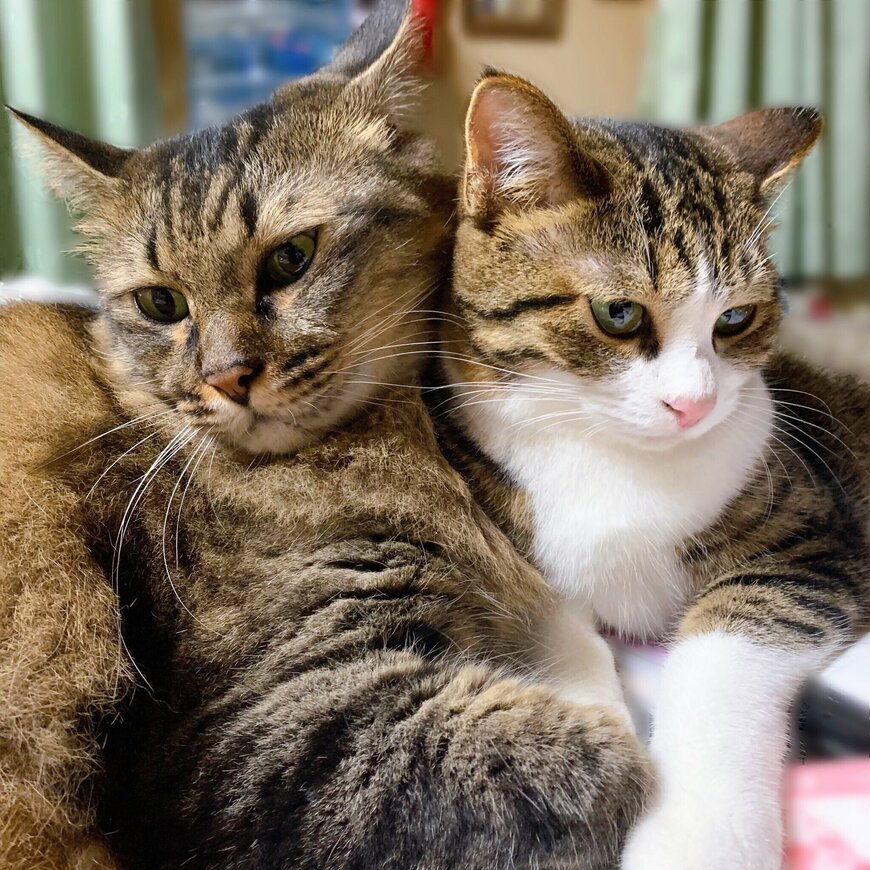 写っているのは、ピッタリと密着して座る2匹の猫ちゃんです。