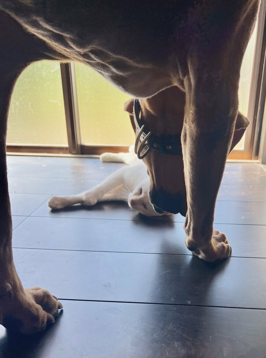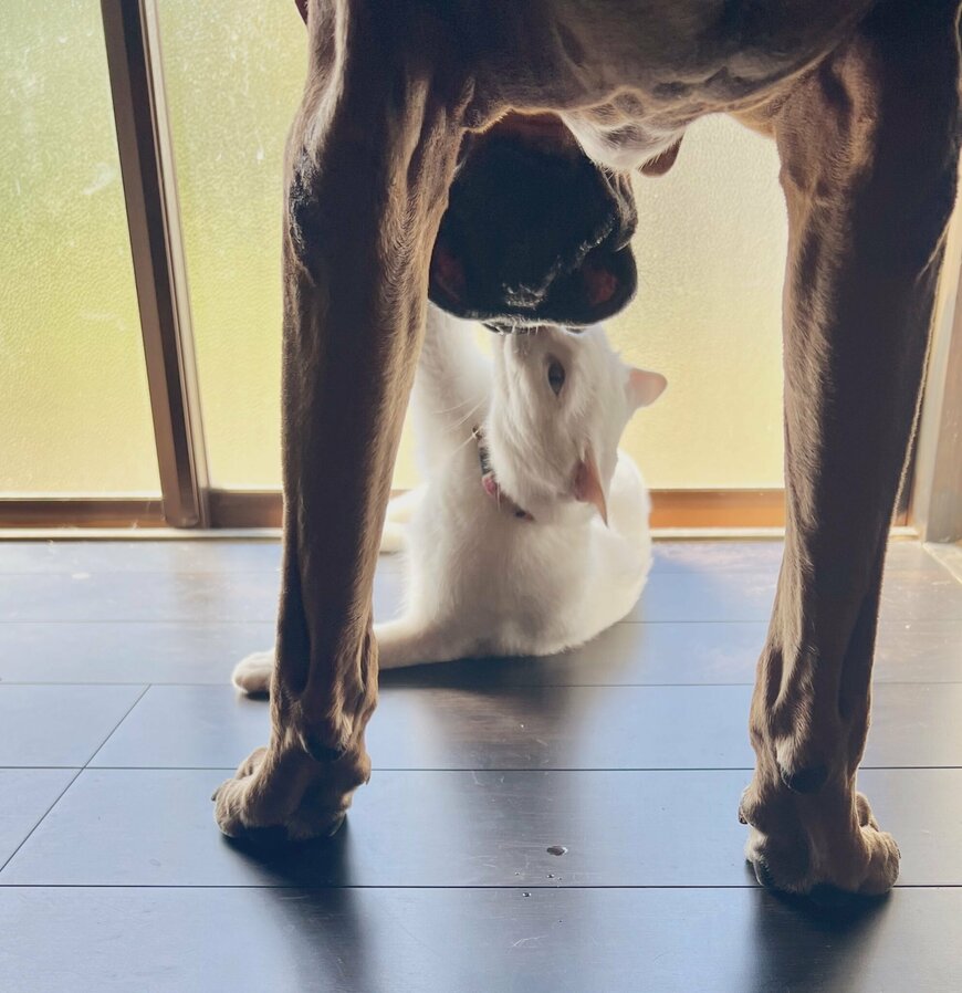 2枚目の写真では鼻同士をくっつけているようで、2匹の仲のよさが伝わってきます。