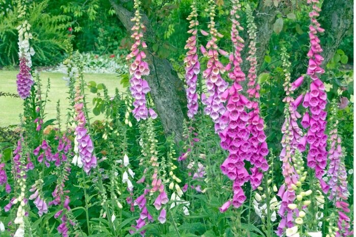 スッと伸びた細長い茎にベル型の花をたくさん咲かせるジキタリス。