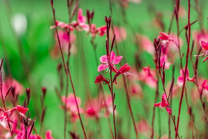 細く長く繊細な茎に、チョウのような花を穂状に咲かせるガウラ。