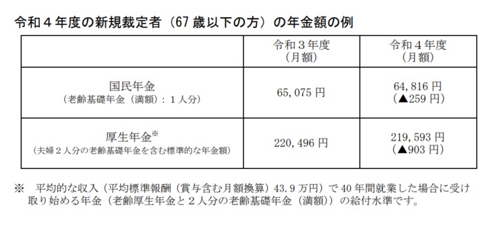 1.2022年度は厚生年金と国民年金が0.4%減額へ