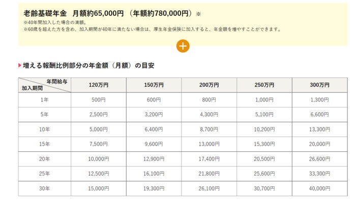 厚生年金に加入すれば、これに上乗せした額が貰えます。厚生年金は収入に応じた保険料を払い、収入が多いほど将来の受給額が上がります。
