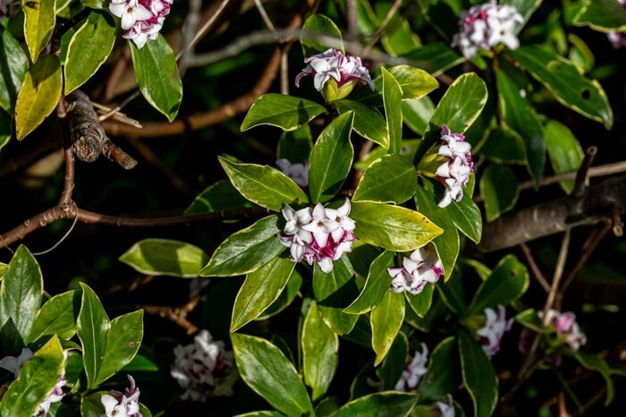 春の訪れを告げる和の花、ジンチョウゲ。晩冬から春にかけて甘い香りの小花を咲かせ、夏のクチナシ、秋のキンモクセイと並び日本三大香木のひとつに数えられています。